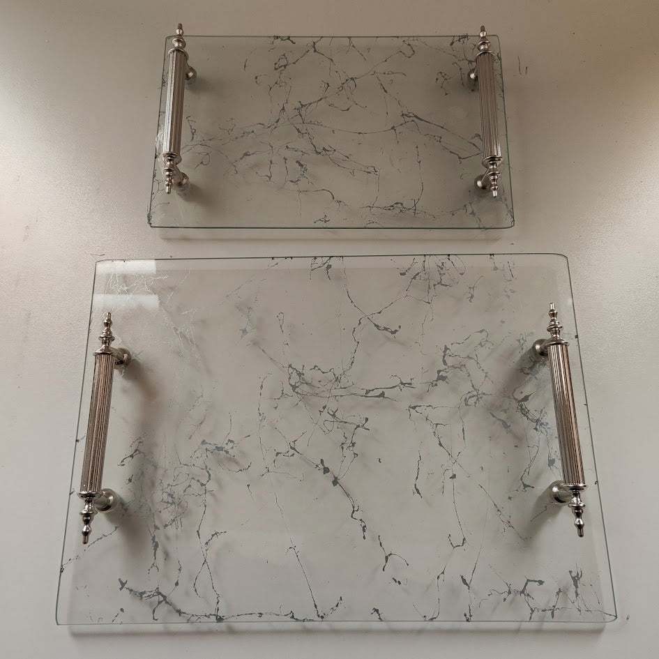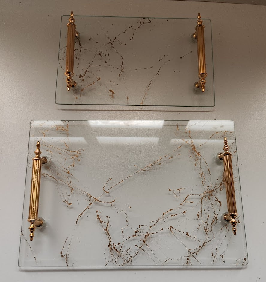 Şeffaf Cam Tepsi Altın Desenli Hayal Kulp